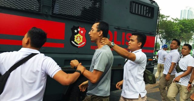Salah seorang wartawan media online ditarik bajunya dan dipaksa menghapus foto. Melihat kejadian itu, kru Inews tidak berani melawan kesewenangan aparat dan terpaksa menghapus videonya.