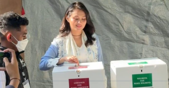 TERNATE – Calon Gubernur Maluku Utara (Malut) nomor urut 4, Sherly Tjoanda menggunakan hak suaranya dalam Pilkada serentak 2024 di Kota Ternate. Sherly menjadi cagub karena menggantikan suaminya, Benny Laos