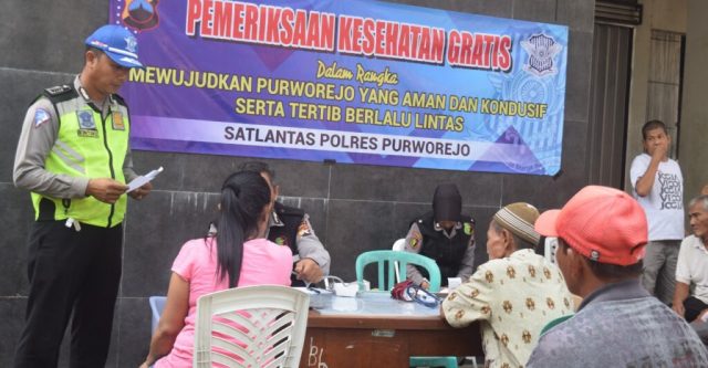 Kegiatan bakti sosial yang dilakukan Polres Purworejo meliputi, perpajangan Sim online, pemeriksaan kesehatan gratis serta loket pembayaran pajak kendaraaan bermotor.