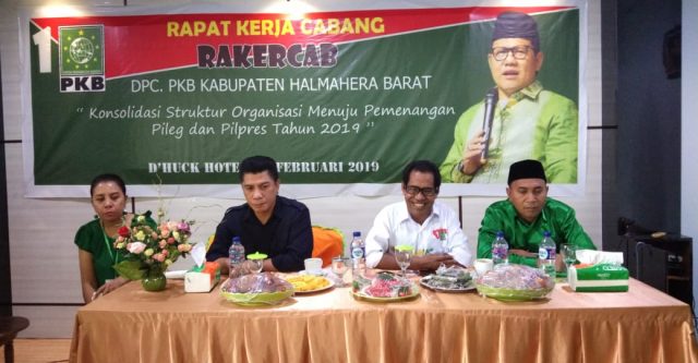 “Kami optimis meraih 4 kursi di setiap Dapil, olehnya itu, periode ini PKB memiliki 12 kursi di DPRD Halbar,”tegas Ketua DPC PKB Halbar Sirfan Mahdi saat menyampaikan sambutan pada acara Rapat Kerja Cabang (Rakercab) di Hotel D’Hoek Desa Hatebicara Kecamatan Jailolo, Sabtu (23/2/19).