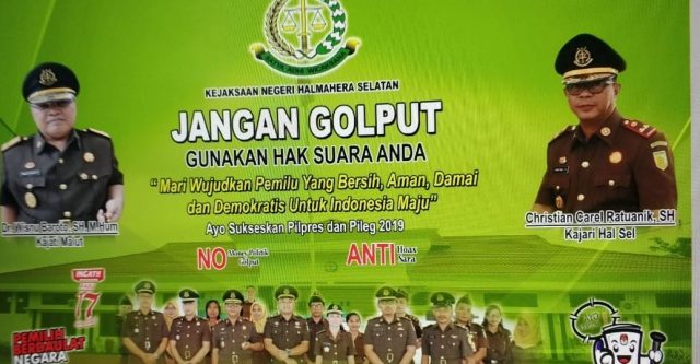 BACAN – Menjelang H-1 Pemilihan Umum (Pemilu) 2019 yang akan dilaksanakan pada Rabu 17 April besok. Kepala Kejaksaan Negeri (Kajari) Halsel, Christian Carel Ratuanik SH, menghimbau tegas kepada seluruh elemen