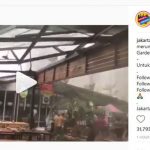 Jakarta – Hujan dan angin kencang yang melanda Jakarta pada Senin (10/12/2018) siang ini membuat atap Rasuna Garden Food Street di kawasan Kuningan, Jakarta Selatan, lepas. Dalam video yang beredar di