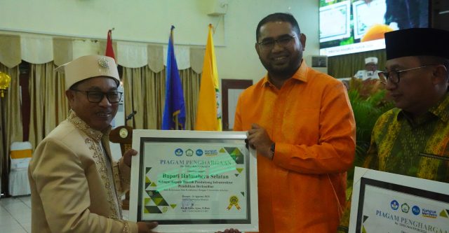 TERNATE – Bupati Kabupaten Halmahera Selatan, Hasan Ali Bassam Kasuba, menerima penghargaan sebagai kepala daerah yang mendukung infrastruktur pendidikan berkualitas. Penghargaan ini diberikan oleh kampus ternama di Indoensia Timur yakni