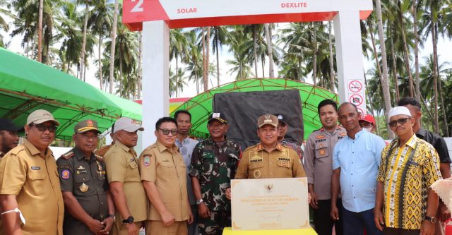 TALIABU, MALUT – Bupati Pulau Taliabu, Aliong Mus, meresmikan Stasiun Pengisian Bahan Bakar Umum (SPBU) Kompak Samuya, Senin (1/11). Persemian ditandai dengan penandatanganan prasasti dan pengisian perdana Bahan Bakar Minyak