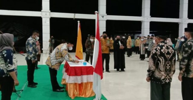 TALIABU, MALUT – Bupati Pulau Taliabu, Aliong Mus mengukuhkan dan melantik Kepala sekolah (Kepsek) Paud/TK, SD, SMP dan kepala Puskesmas di lingkup Pemerintah Kabupaten (Pemkab) Pulau Taliabu, Provinsi Maluku Utara
