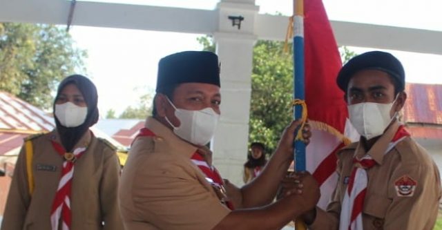 TALIABU, MALUT – Bupati Pulau Taliabu, H Aliong Mus yang juga Ketua Majelis Pembimbing Cabang (Mabicab) melepas kontingen Kwarcab Pramuka Pulau Taliabu untuk mengikuti Jambore Daerah (Jamda) I Provinsi Maluku