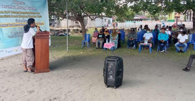HALTIM, MALUT — Lembaga Swadaya Masyarakat (LSM) Bina Lingkungan Pesisir dan Pulau (BLPP) Halmahera Timur (Haltim) melakukan pelepasan karang buatan sebanyak 100 unit di lepas pantai Kota Maba Halmahera Timur,