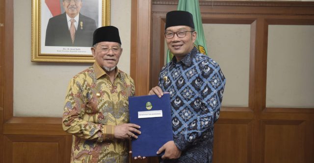 BANDUNG – Pemerintah Provinsi (Pemprov) Jawa Barat (Jabar) dan Pemerintah Provinsi (Pemprov) Maluku Utara (Malut) sepakat melakukan kerja sama dalam 25 bidang. Hal ini tertuang dalam nota kesepahaman bersama yang ditandatangani Gubernur Jawa Barat Ridwan Kamil dan Gubernur Maluku Utara Abdul Ghani Kasuba di Gedung Sate, Kota Bandung, Selasa (9/7/2019).