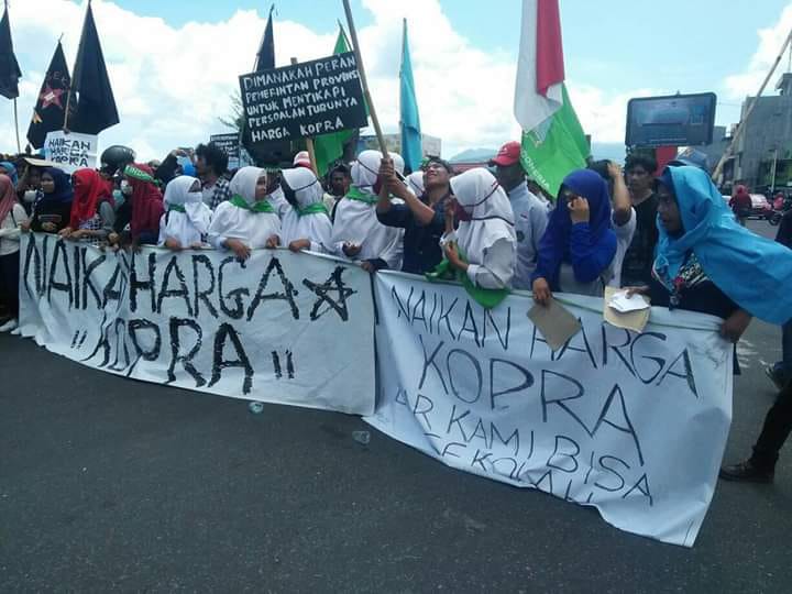 Jalanan Kampus I Universitas Khairun dan Bandara Sultan Babullah Ternate dibanjiri lautan Mahasiswa begitu juga di sepanjang kantor ex Gubernur dan kediaman Gubernur Maluku Utara. Begitulah lanskap terekam mata. Ribuan Mahasiswa tumpah-ruah turun ke jalan menuntut kenaikan harga kopra yang melemah kronis dan menyengsarakan Petani Kopra di Halmahera,Bacan, Sanana, polosok desa-desa lainya.