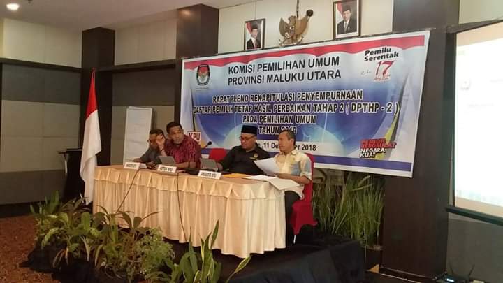 TERNATE – Komisi Pemilihan Umum (KPU) Provinsi Maluku Utara telah melaksanakan pleno rekapitulasi penyempurnaan daftar pemilih tetap hasil perbaikan ke – II (DPTHP-II), Selasa (11/12).