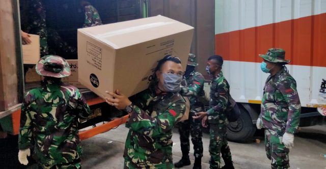 JAKARTA – Langkah cepat prajurit TNI yang tergabung dalam Gugus Tugas Percepatan Penanganan Covid-19 terlihat dalam membantu Pemerintah mendistribusikan Alat Pelindung Diri (APD) ke berbagai daerah.